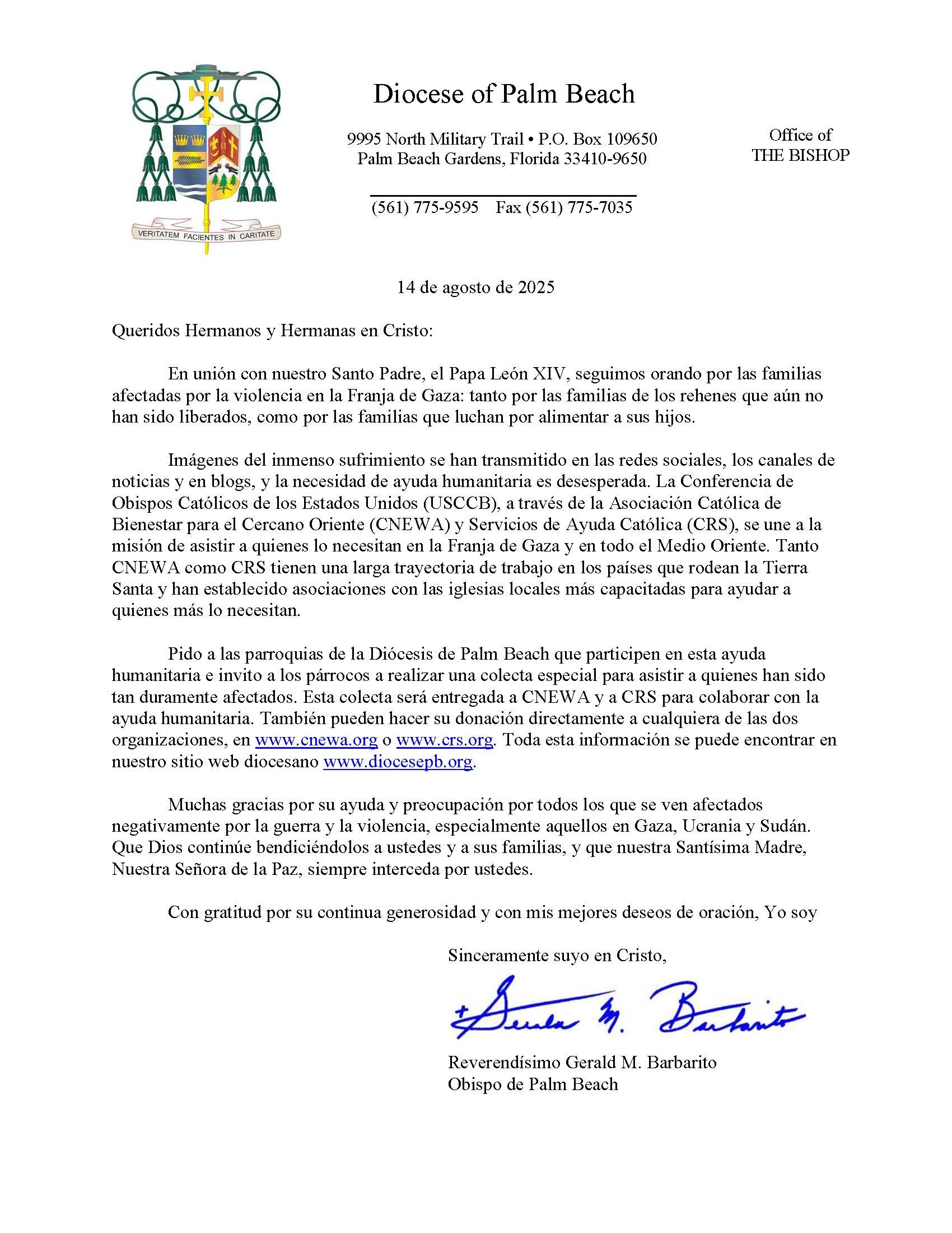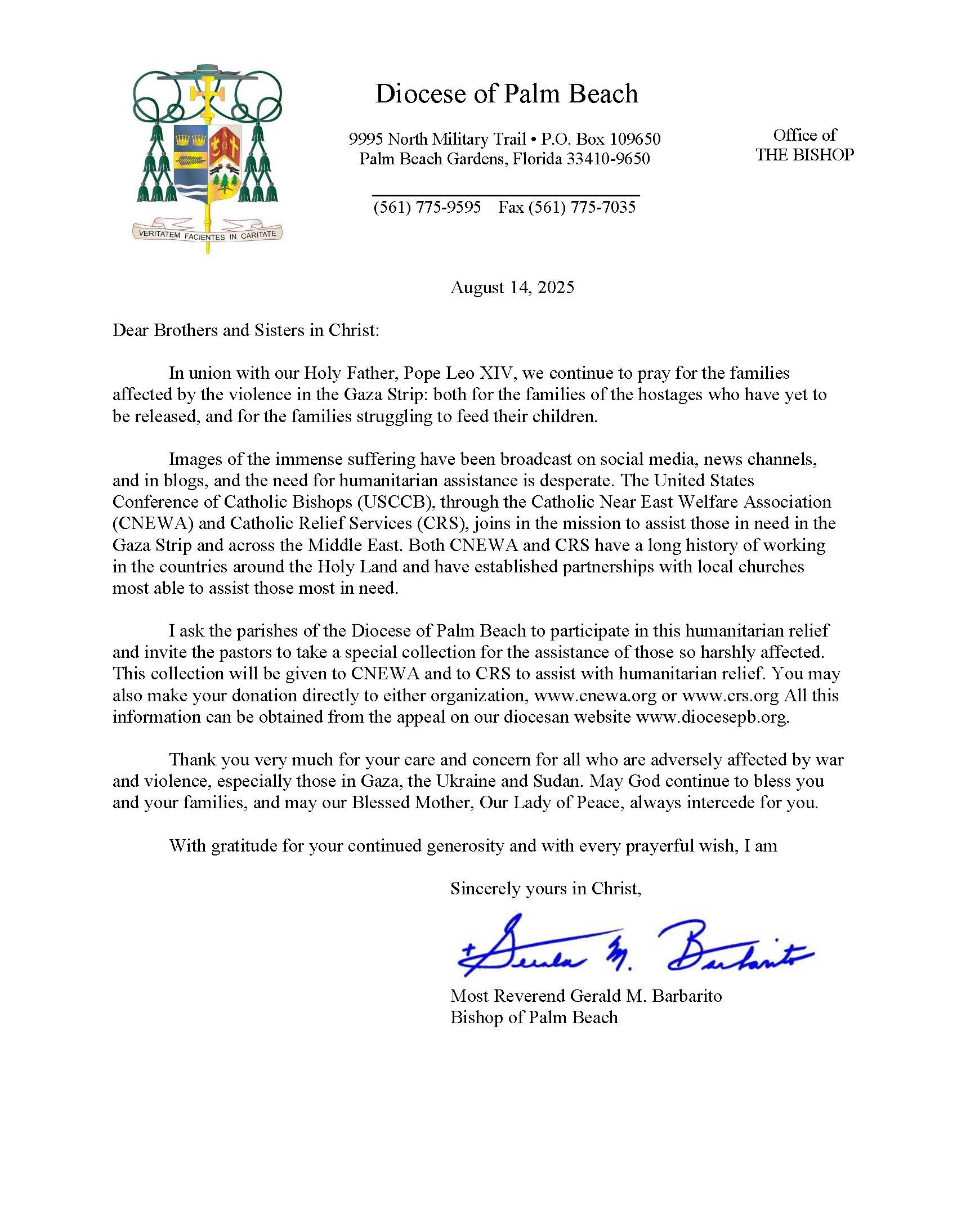 Letter from Most Reverend Gerald M. Barbarito