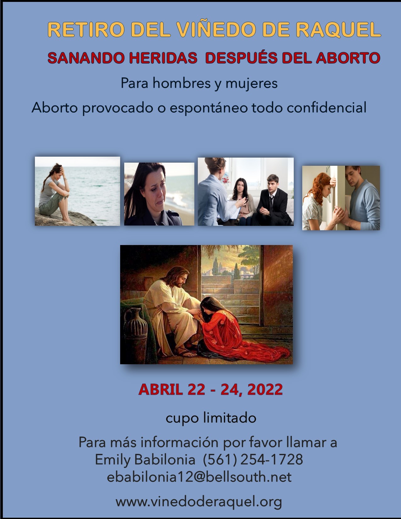 HOPE AFTER ABORTION and MISCARRIAGE: Experience the healing love of Jesus Christ during a Rachel’s Vineyard healing retreat. This retreat offers an opportunity to deeply enter into the grieving process and identify the ways your abortion or miscarriage may have affected you or a loved one. Discussions, spiritual exercises, prayer and reflection combined with the Sacrament of Reconciliation, a Memorial Service honoring your child and a beautiful Mass will help to heal the wounds of your past. Participation is strictly confidential and offers a unique opportunity to experience God’s love, forgiveness and tender compassion. Both men and women are invited to experience this healing for their soul.