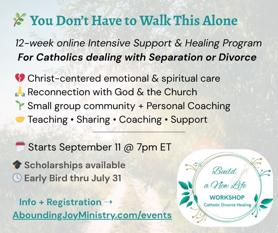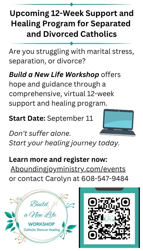 Build a New Life Workshop, Sep. 11, 2025 - support and healing Intensive for the separated and divorced: Flyer l Bulletin Ad. l Bulletin or Social Media Ad.