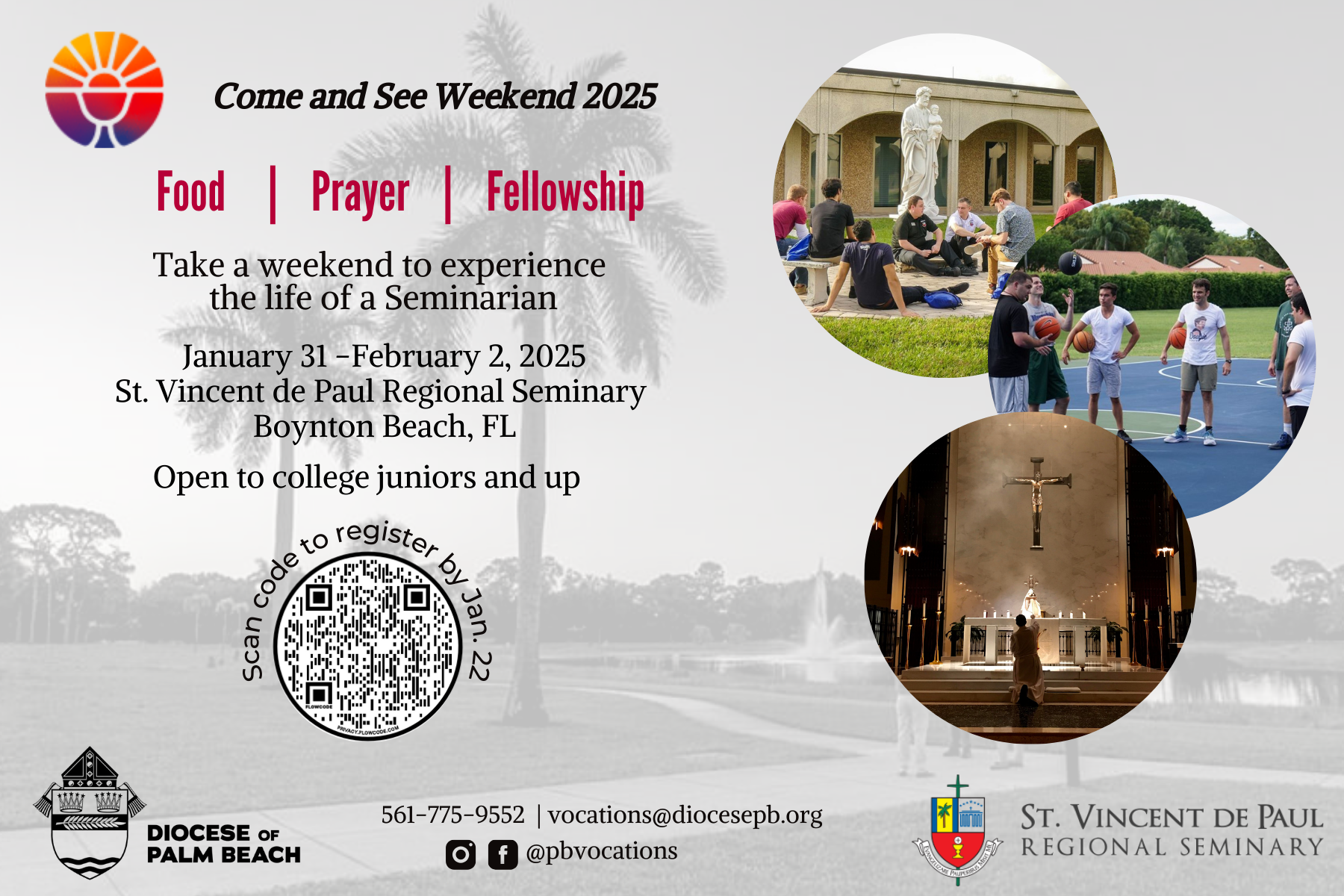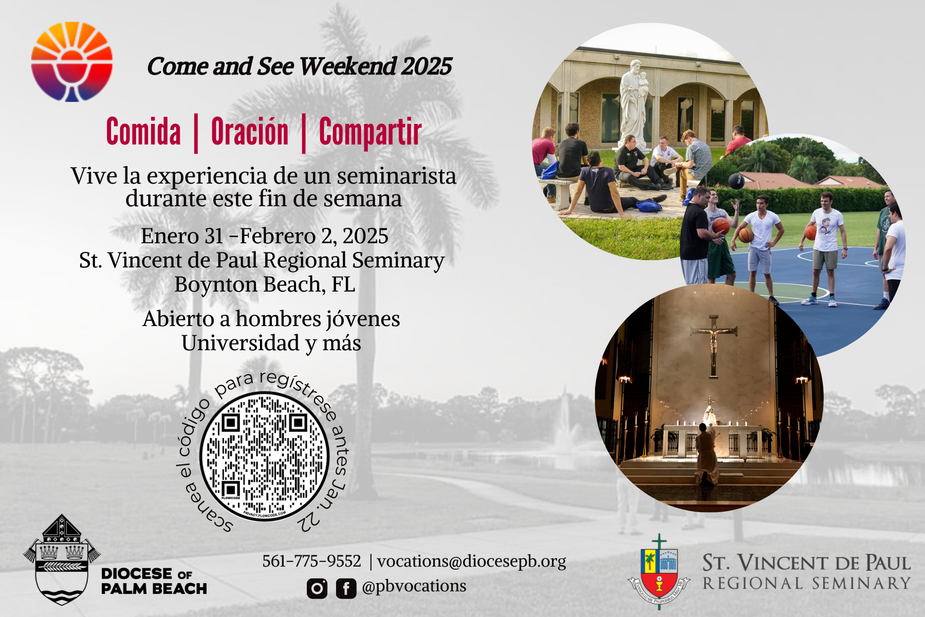 Vocations Men's Come and See (Jan 31-Feb. 2): English: Card front l Card Back. Spanish: Card front l Card back