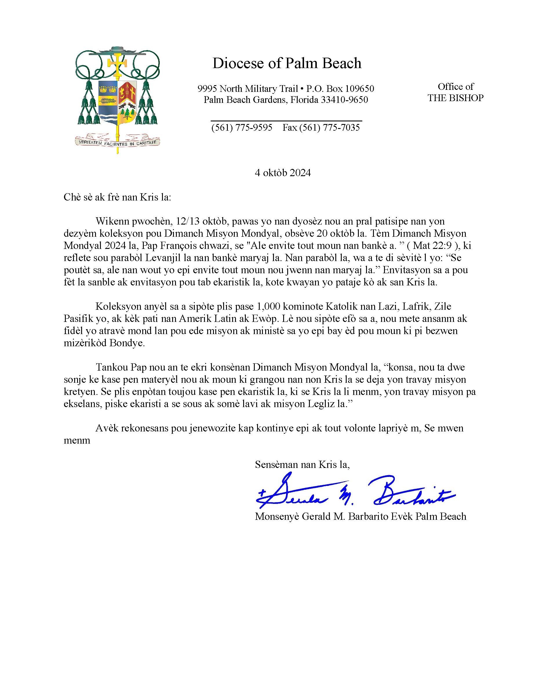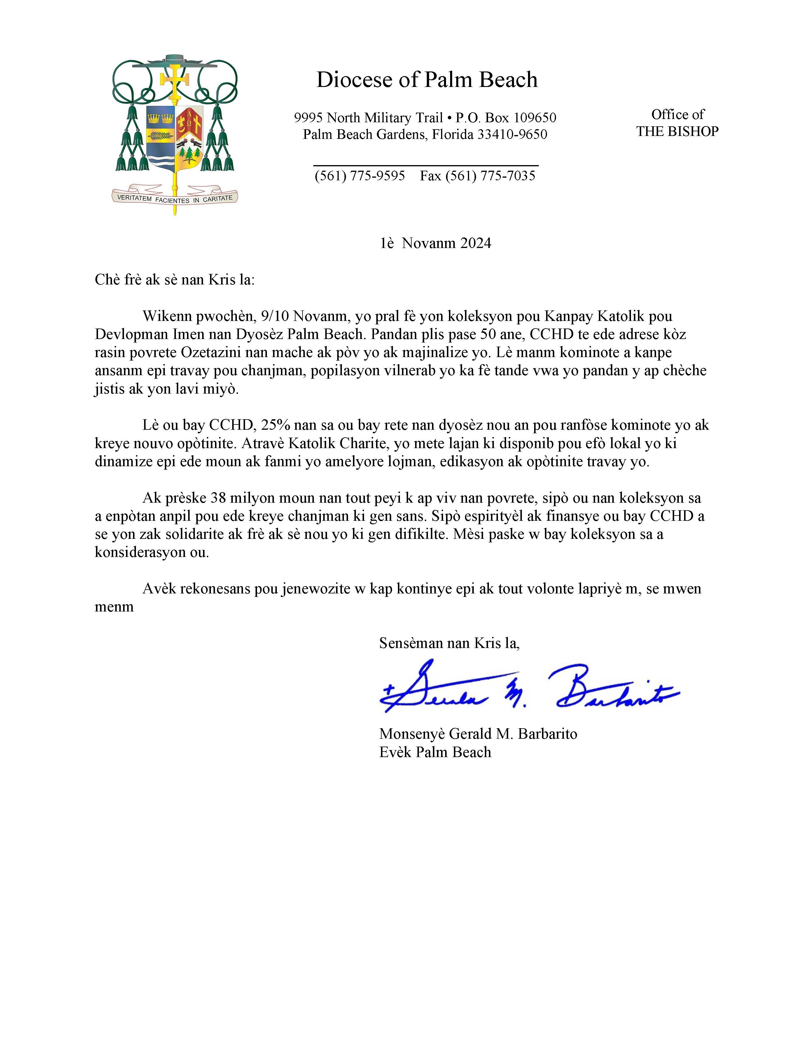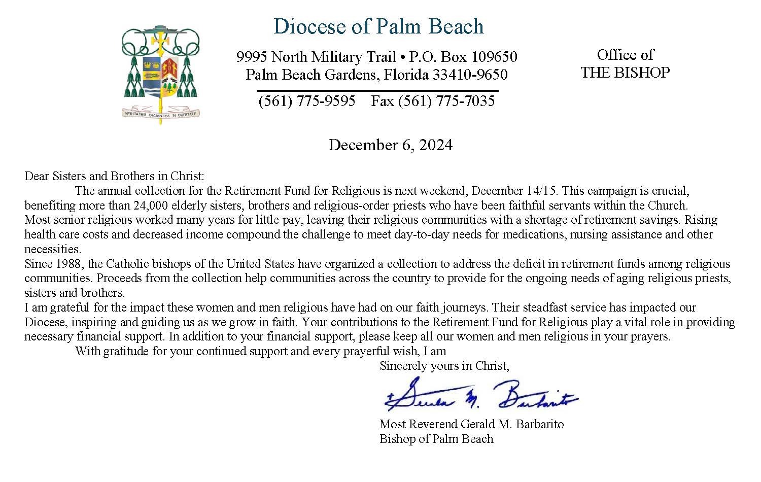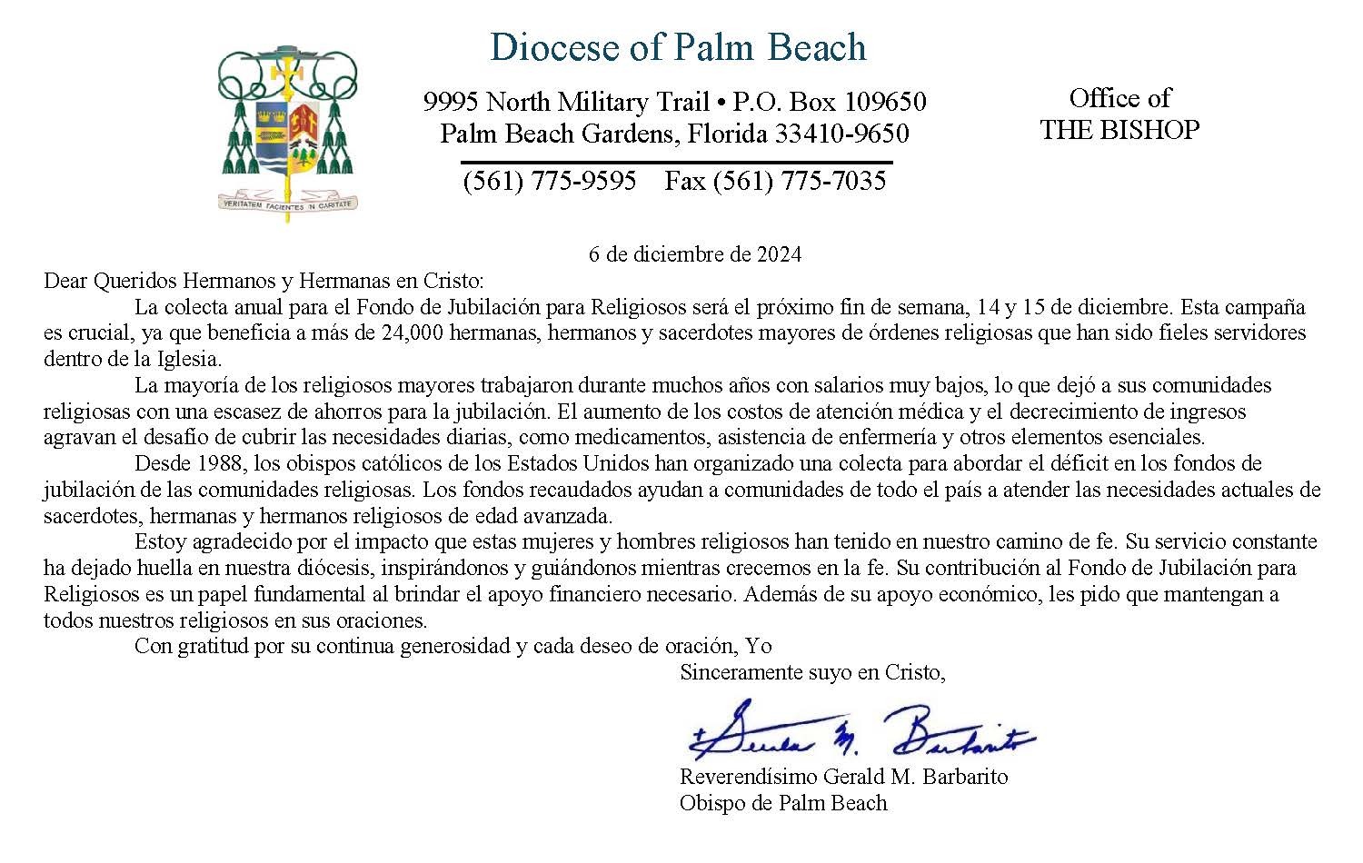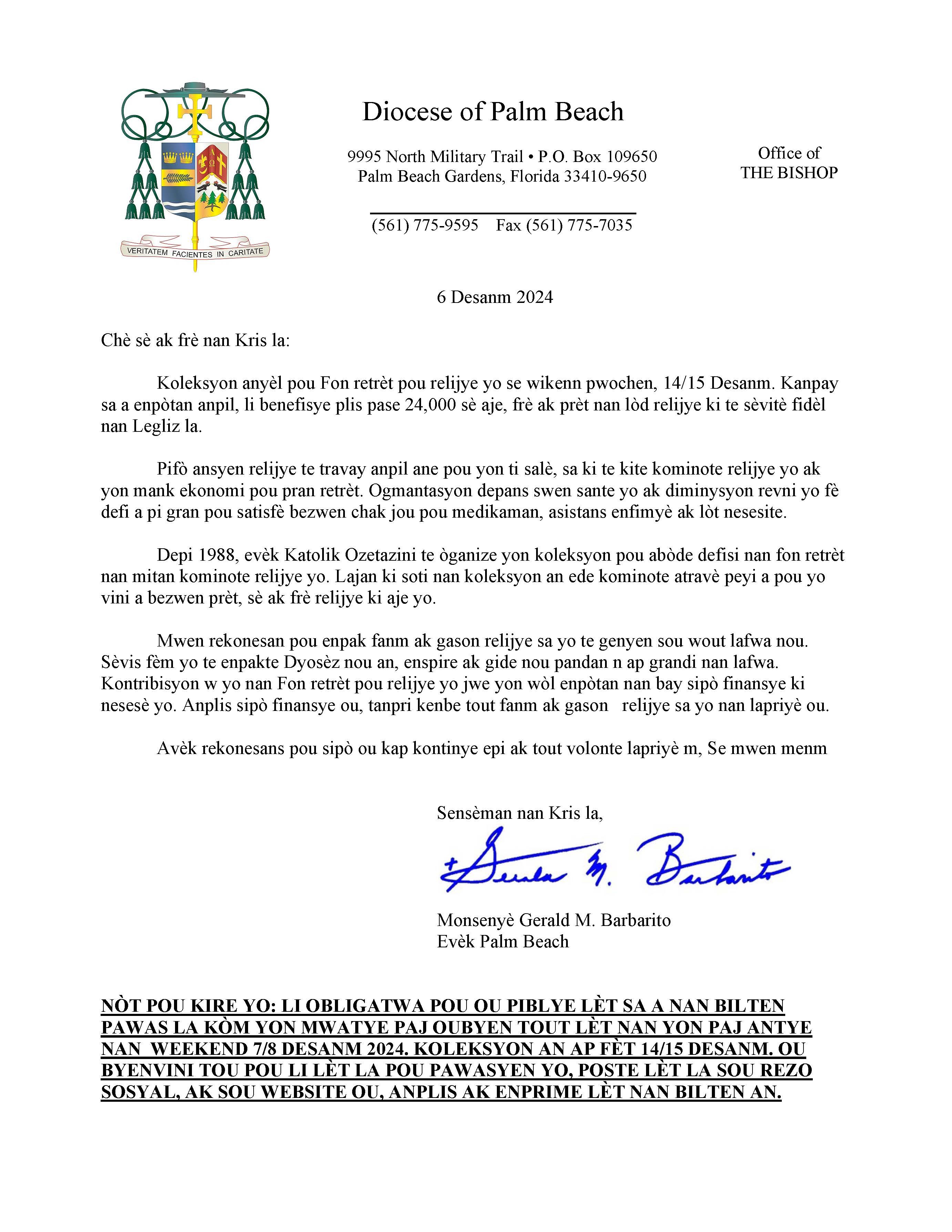 Below are the letters required to be published as a full page or half page in parish bulletins the weekend before the collection occurs. These letters are from the Bishop and the branding standards of the letter should be followed. The letter may also be read aloud, in addition to it being printed in the bulletin and shared on your parish’s social media and/or website. If you have questions about the letters, please contact the diocesan Director of Communications and Development (Jennifer Trefelner). If you have questions about reporting and submitting collection funds, please contact the diocesan Finance Office.