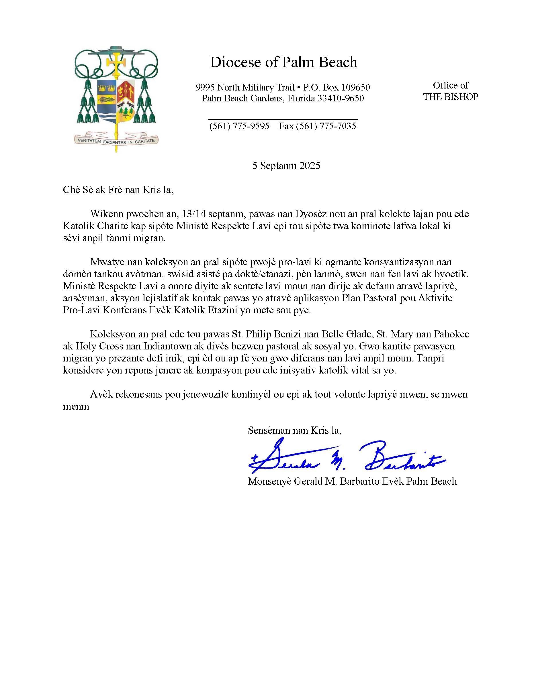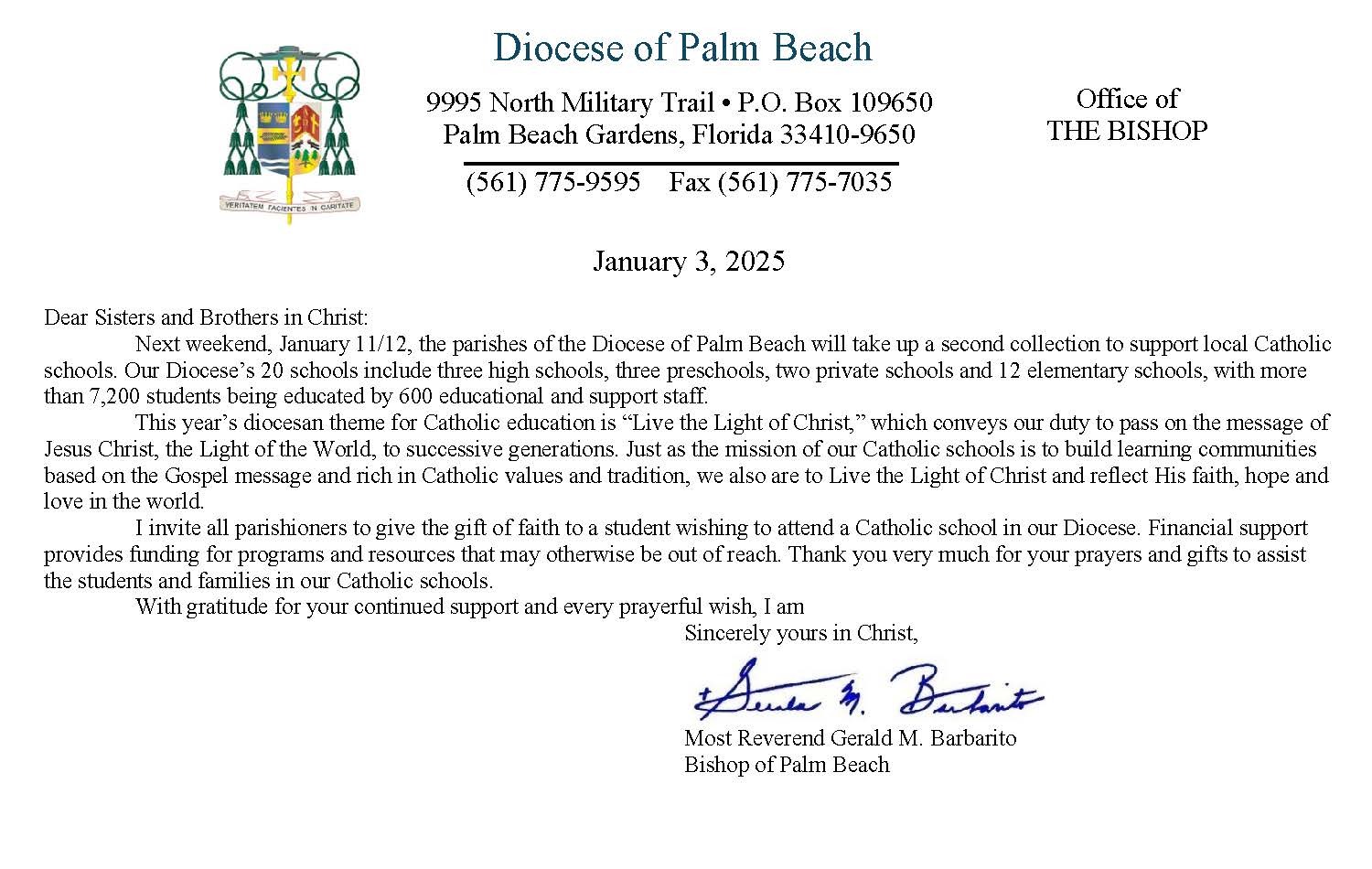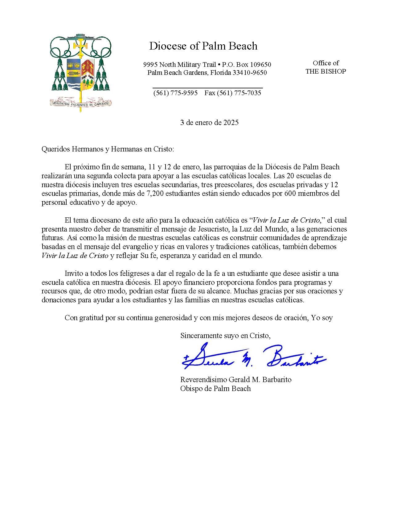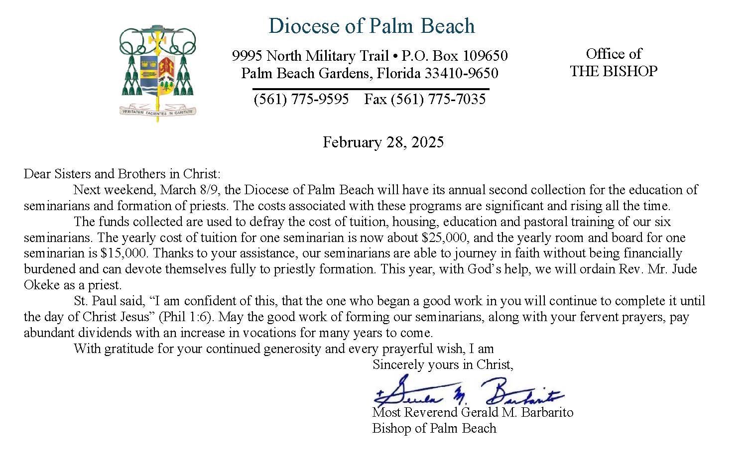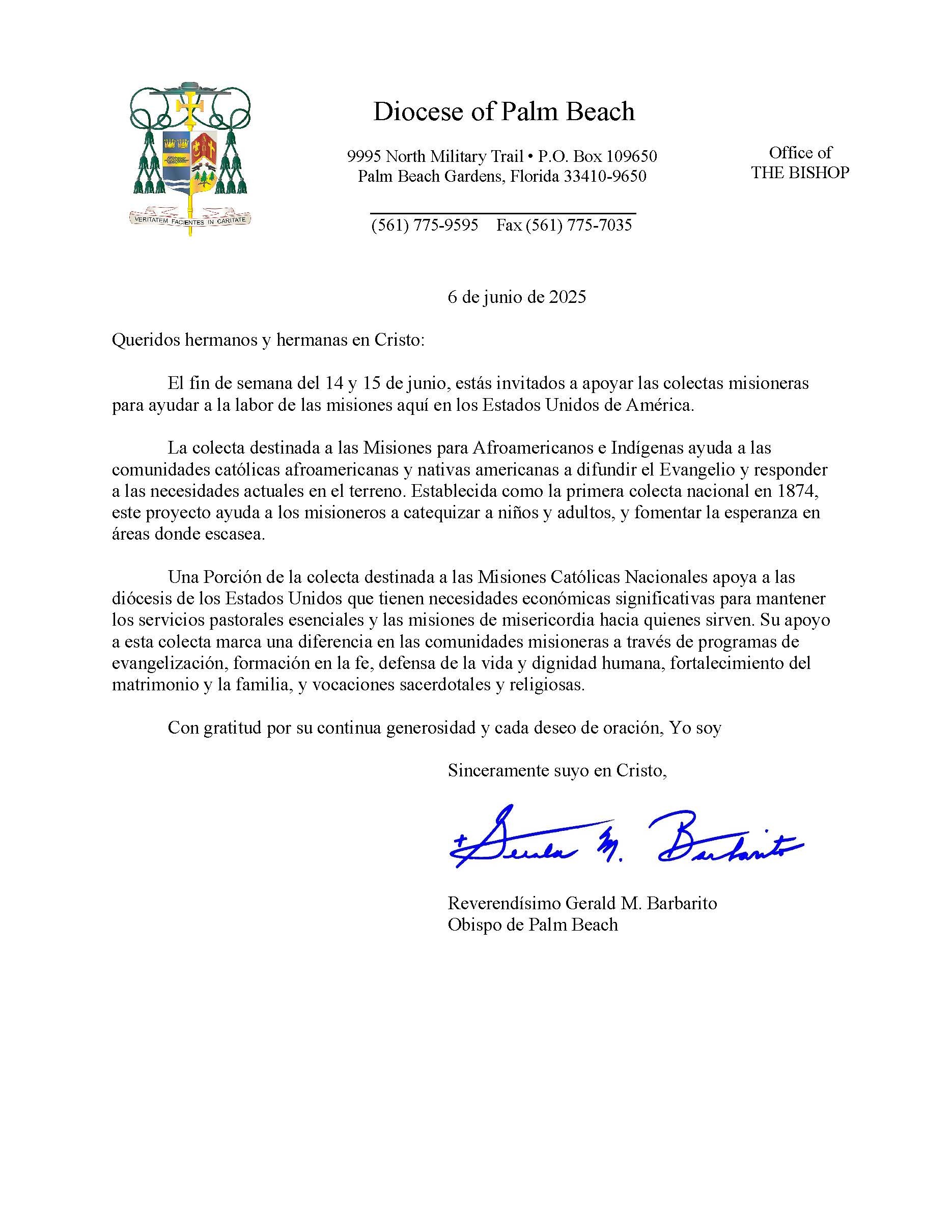 Below are the letters required to be published as a full page or half page in parish bulletins the weekend before the collection occurs. These letters are from the Bishop and the branding standards of the letter should be followed. The letter may also be read aloud, in addition to it being printed in the bulletin and shared on your parish’s social media and/or website. If you have questions about the letters, please contact the diocesan Director of Communications and Development (Jennifer Trefelner). If you have questions about reporting and submitting collection funds, please contact the diocesan Finance Office.