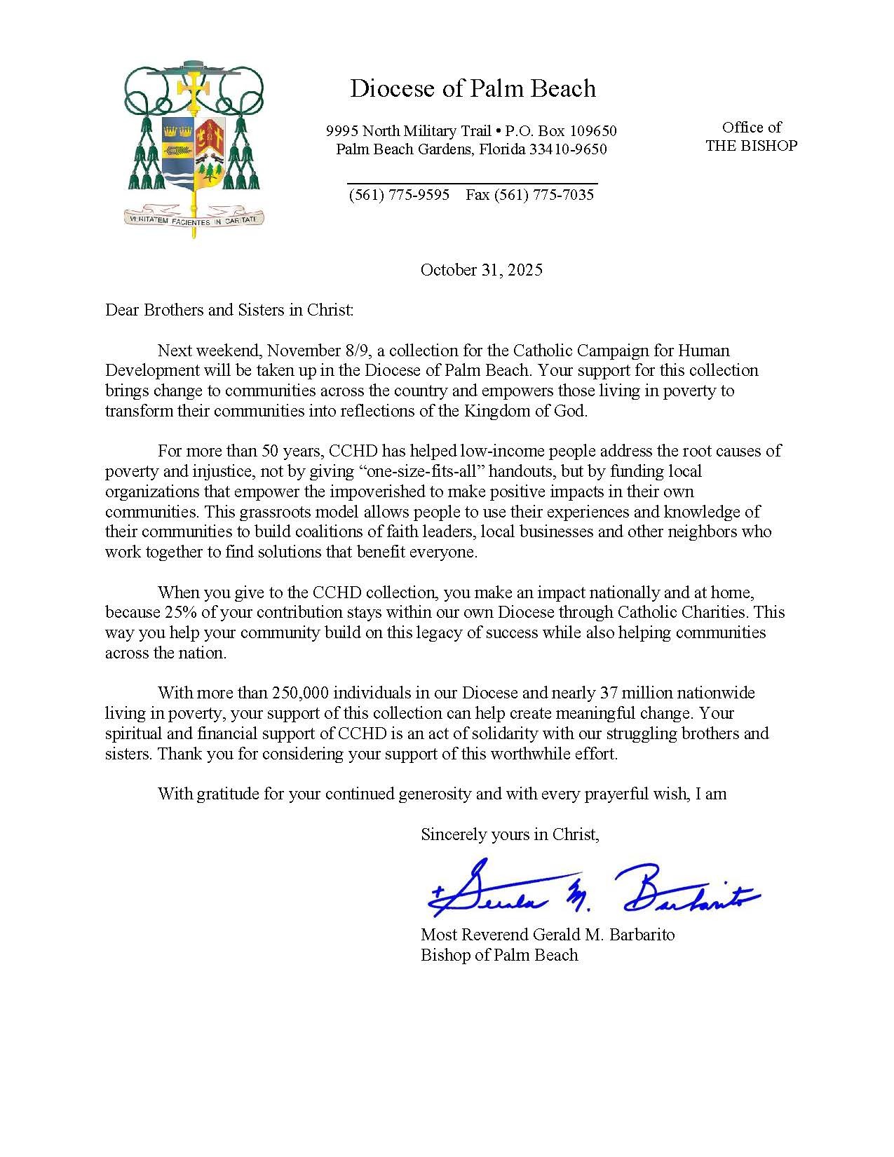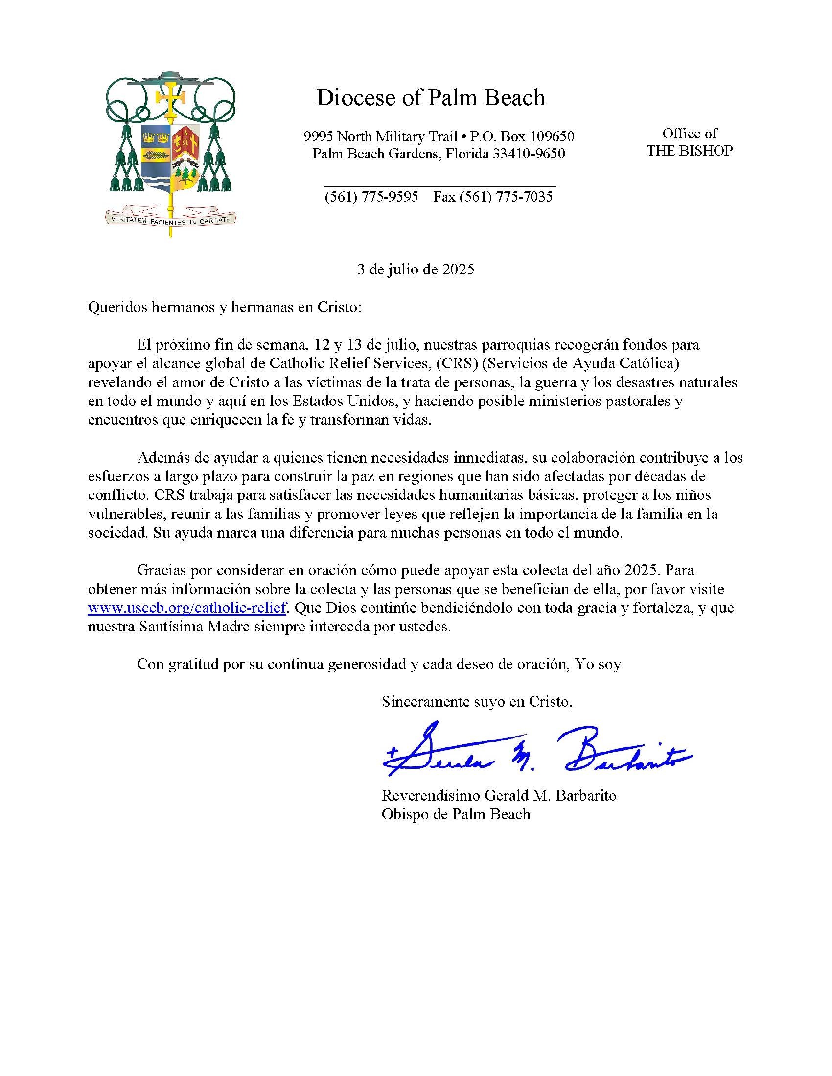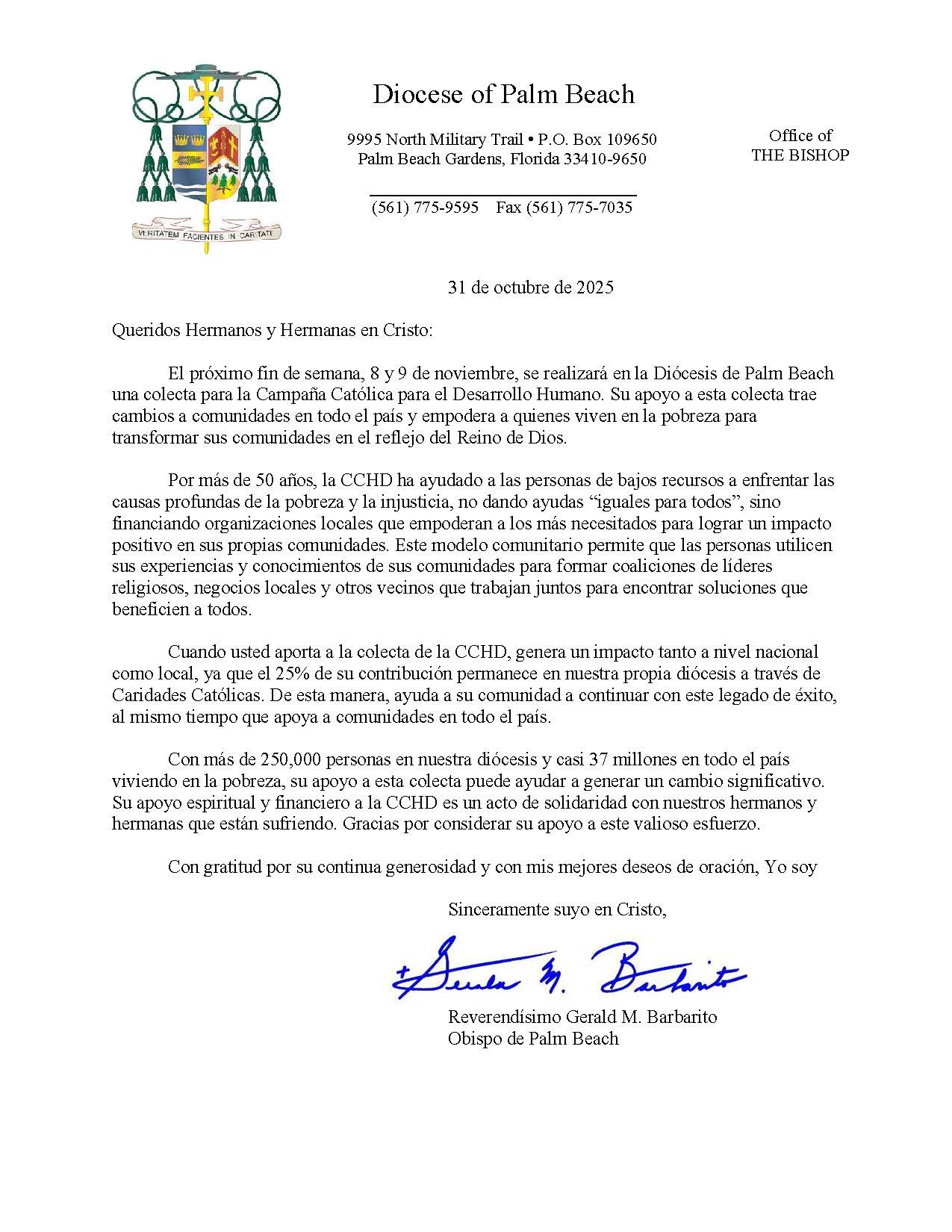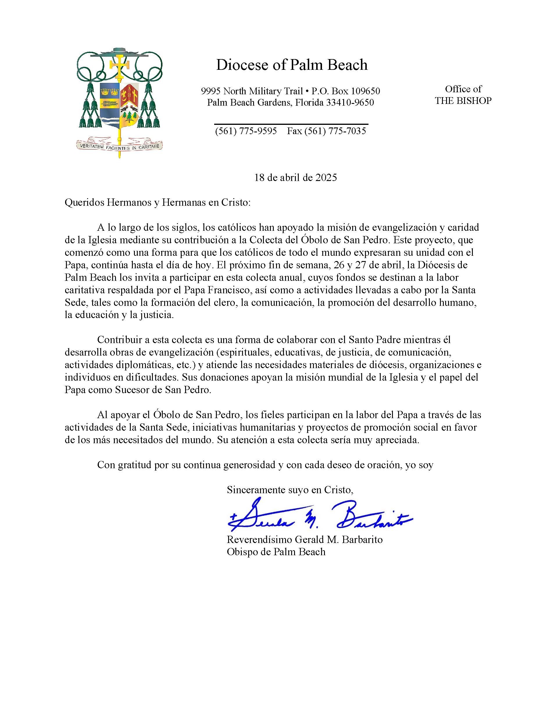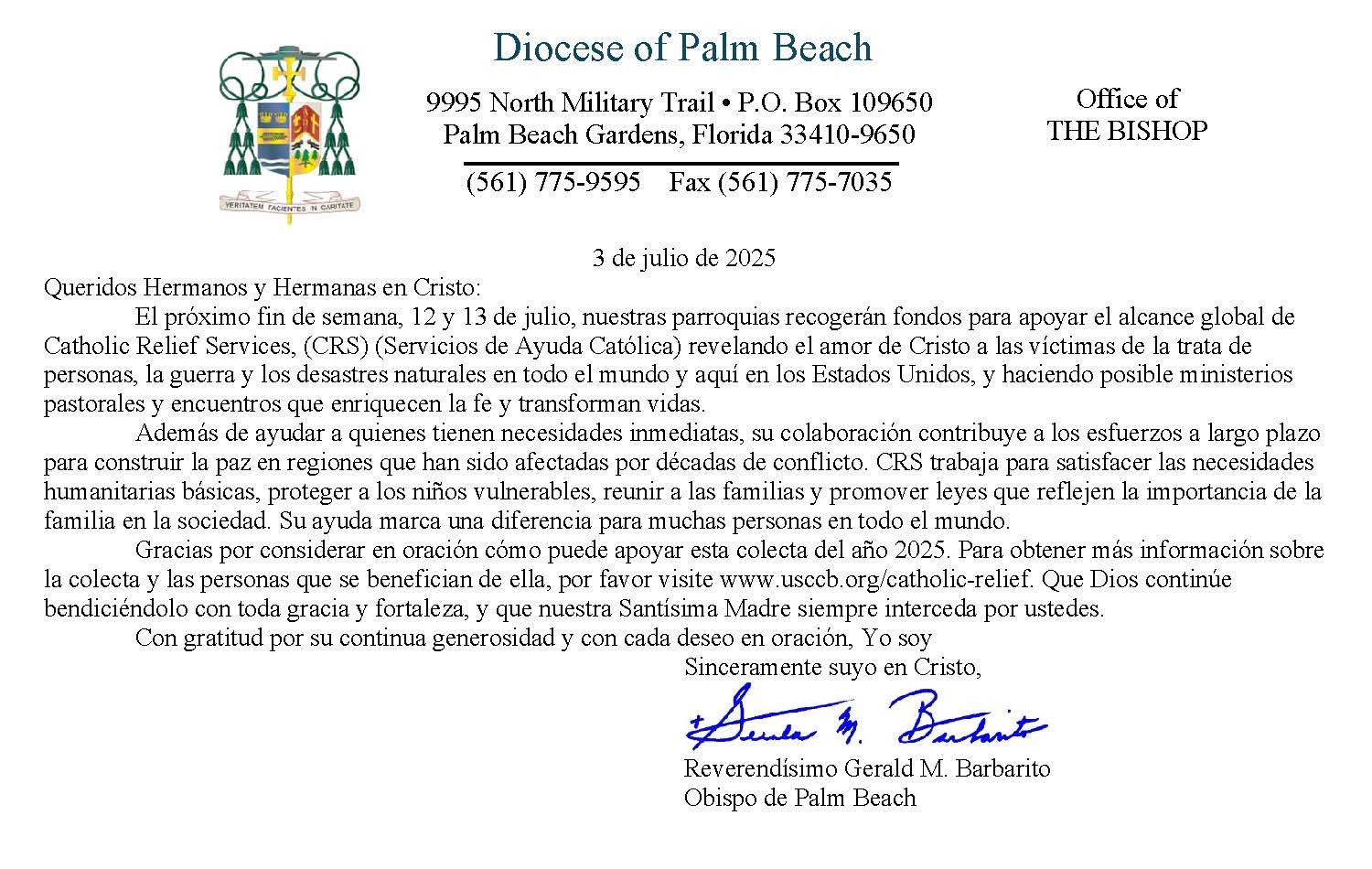 Below are the letters required to be published as a full page or half page in parish bulletins the weekend before the collection occurs. These letters are from the Bishop and the branding standards of the letter should be followed. The letter may also be read aloud, in addition to it being printed in the bulletin and shared on your parish’s social media and/or website. If you have questions about the letters, please contact the diocesan Director of Communications and Development (Jennifer Trefelner). If you have questions about reporting and submitting collection funds, please contact the diocesan Finance Office.