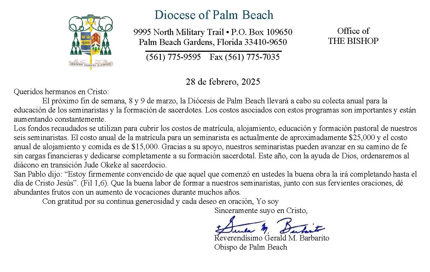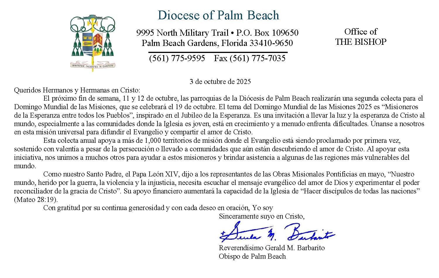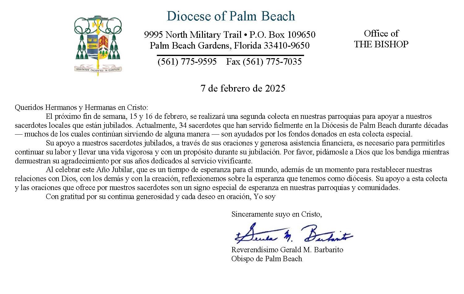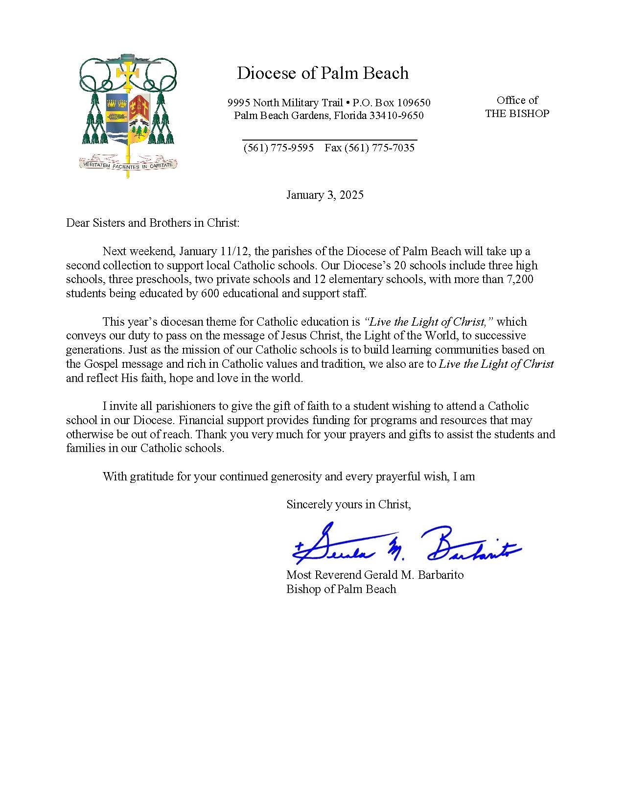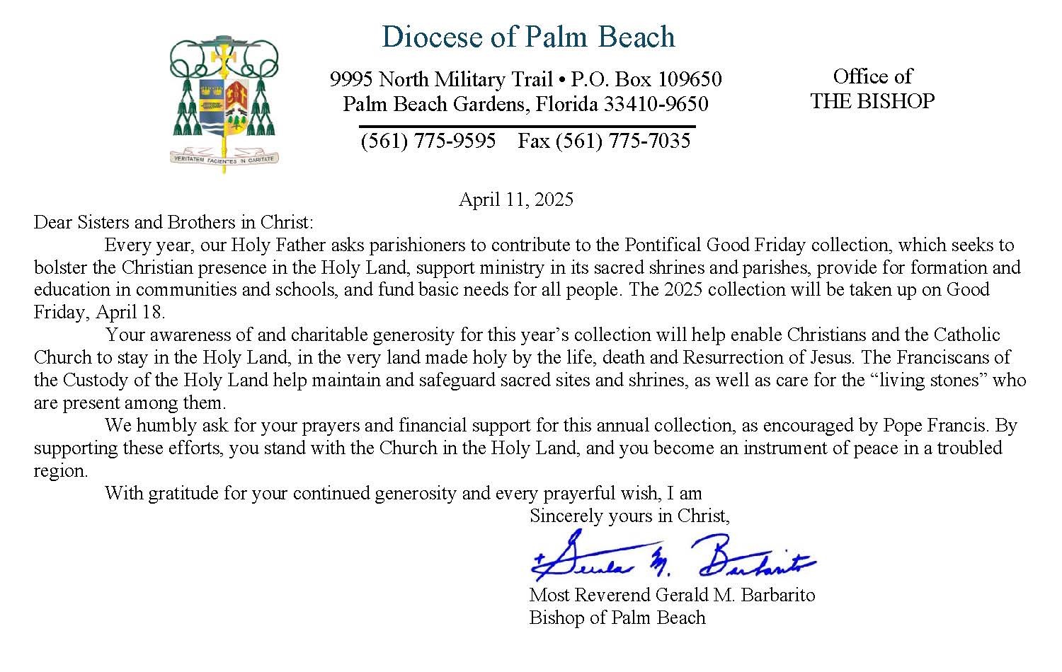 Below are the letters required to be published as a full page or half page in parish bulletins the weekend before the collection occurs. These letters are from the Bishop and the branding standards of the letter should be followed. The letter may also be read aloud, in addition to it being printed in the bulletin and shared on your parish’s social media and/or website. If you have questions about the letters, please contact the diocesan Director of Communications and Development (Jennifer Trefelner). If you have questions about reporting and submitting collection funds, please contact the diocesan Finance Office.