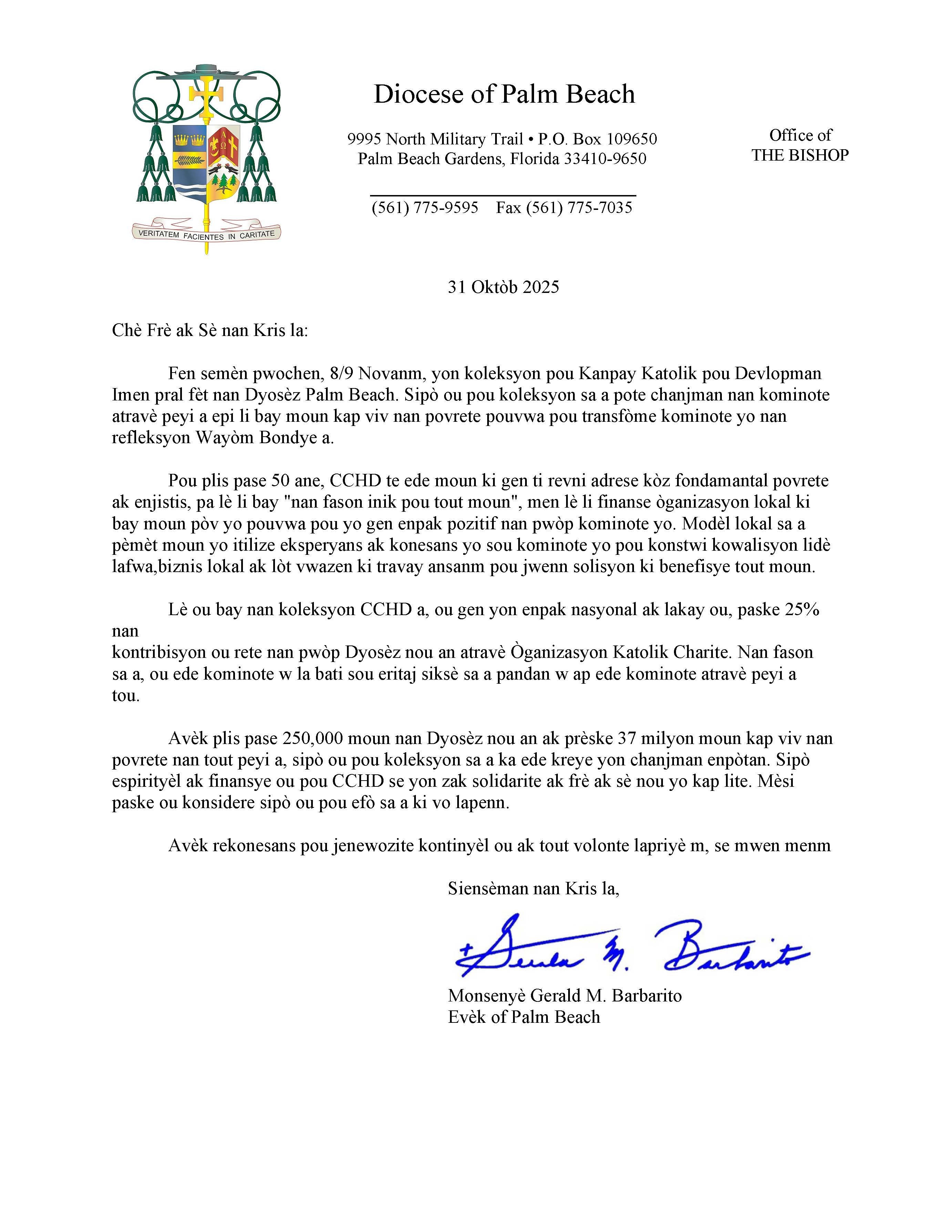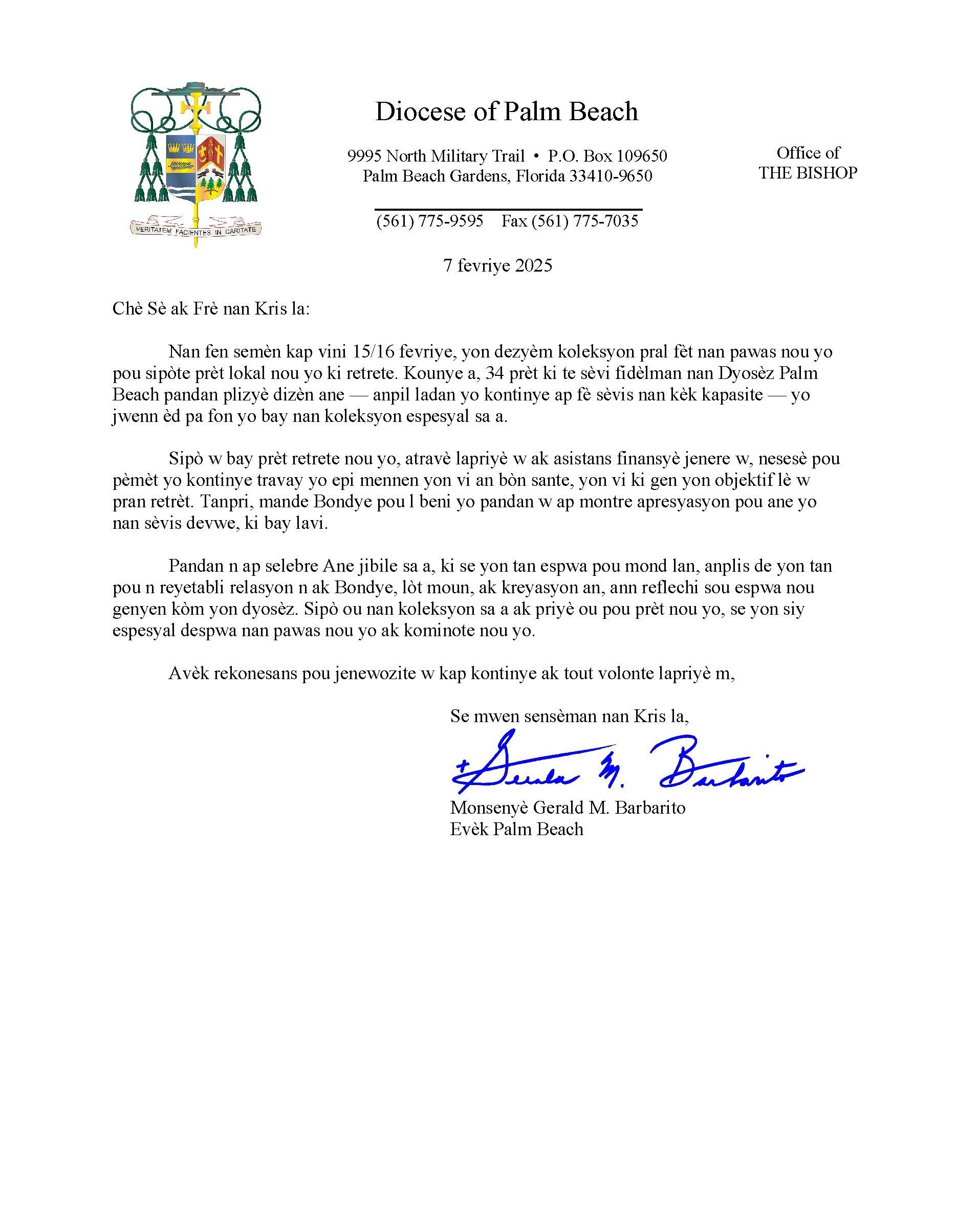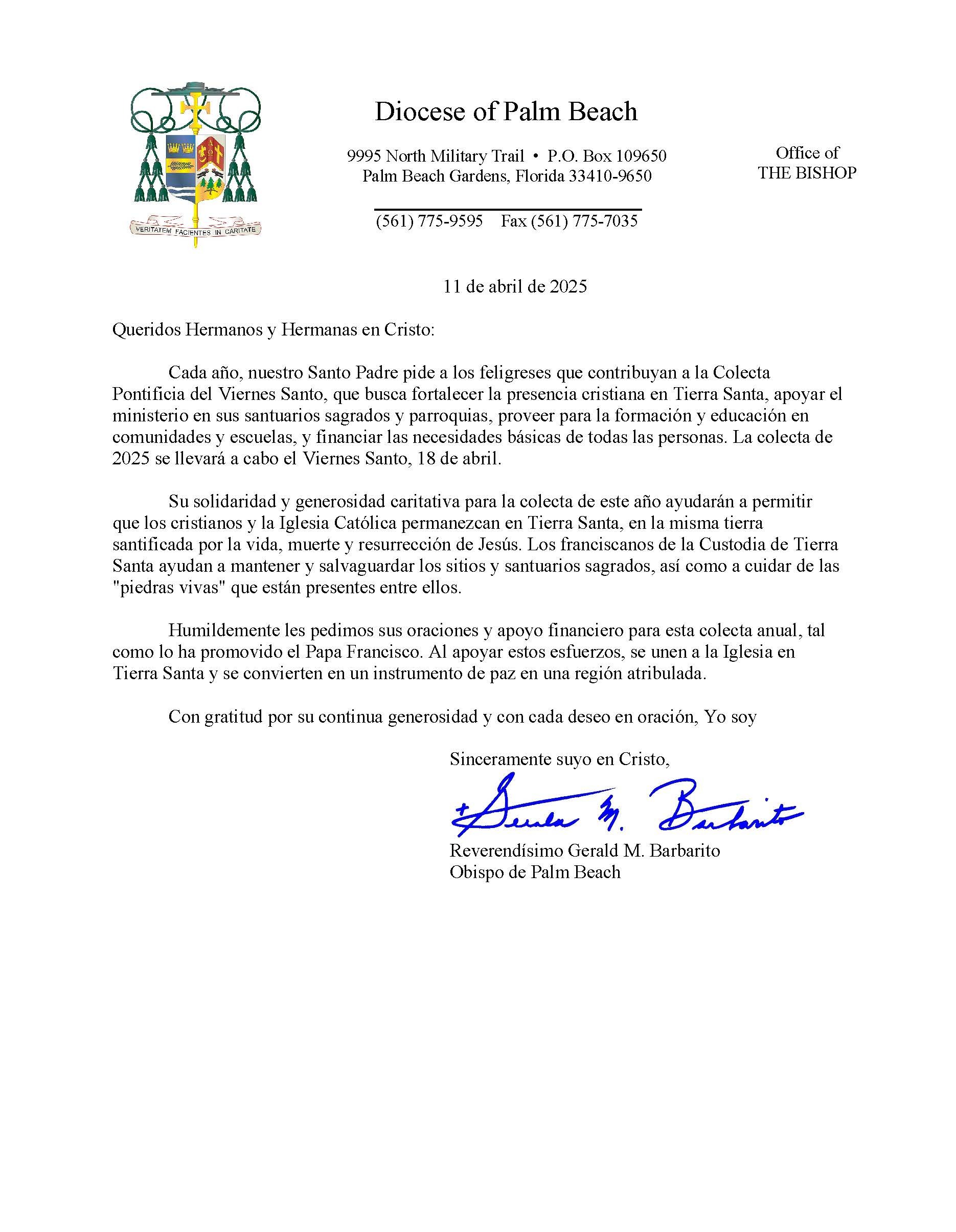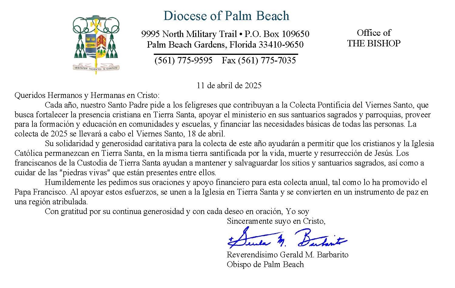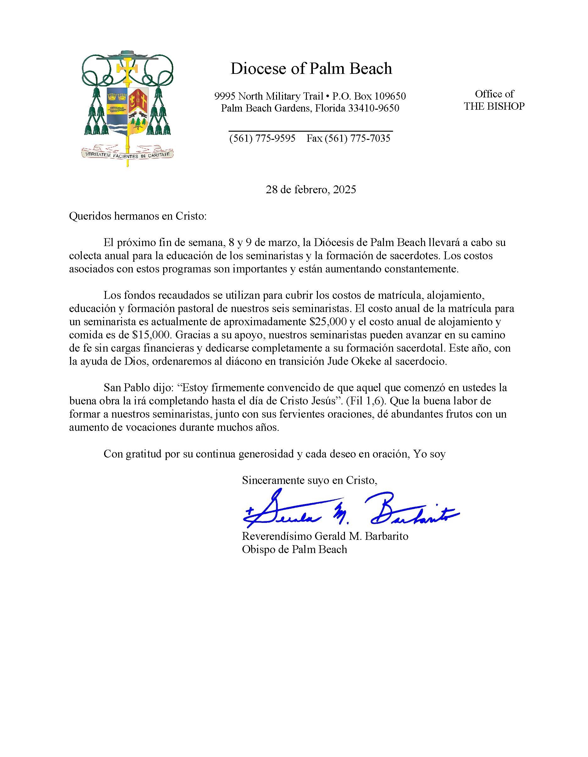 Below are the letters required to be published as a full page or half page in parish bulletins the weekend before the collection occurs. These letters are from the Bishop and the branding standards of the letter should be followed. The letter may also be read aloud, in addition to it being printed in the bulletin and shared on your parish’s social media and/or website. If you have questions about the letters, please contact the diocesan Director of Communications and Development (Jennifer Trefelner). If you have questions about reporting and submitting collection funds, please contact the diocesan Finance Office.