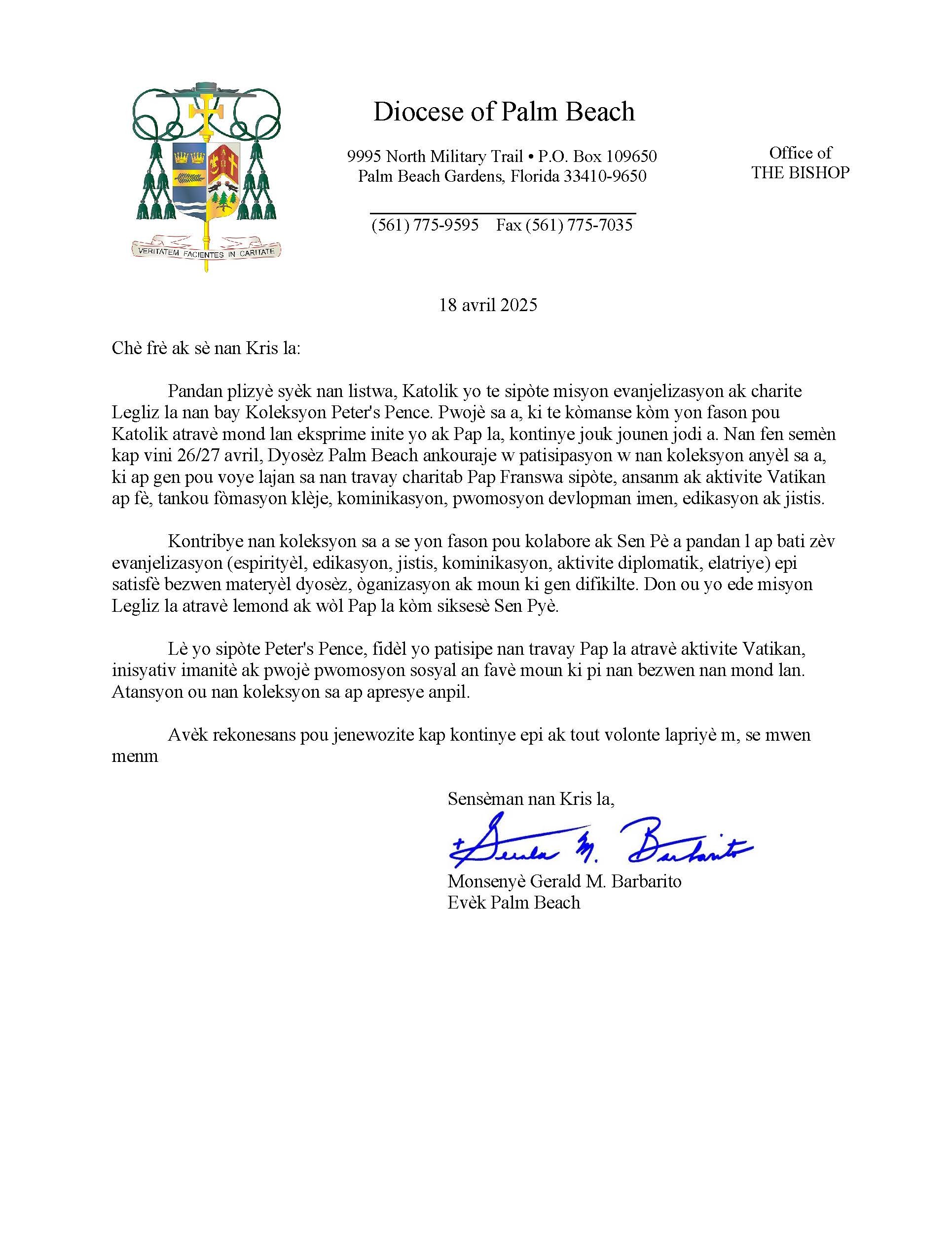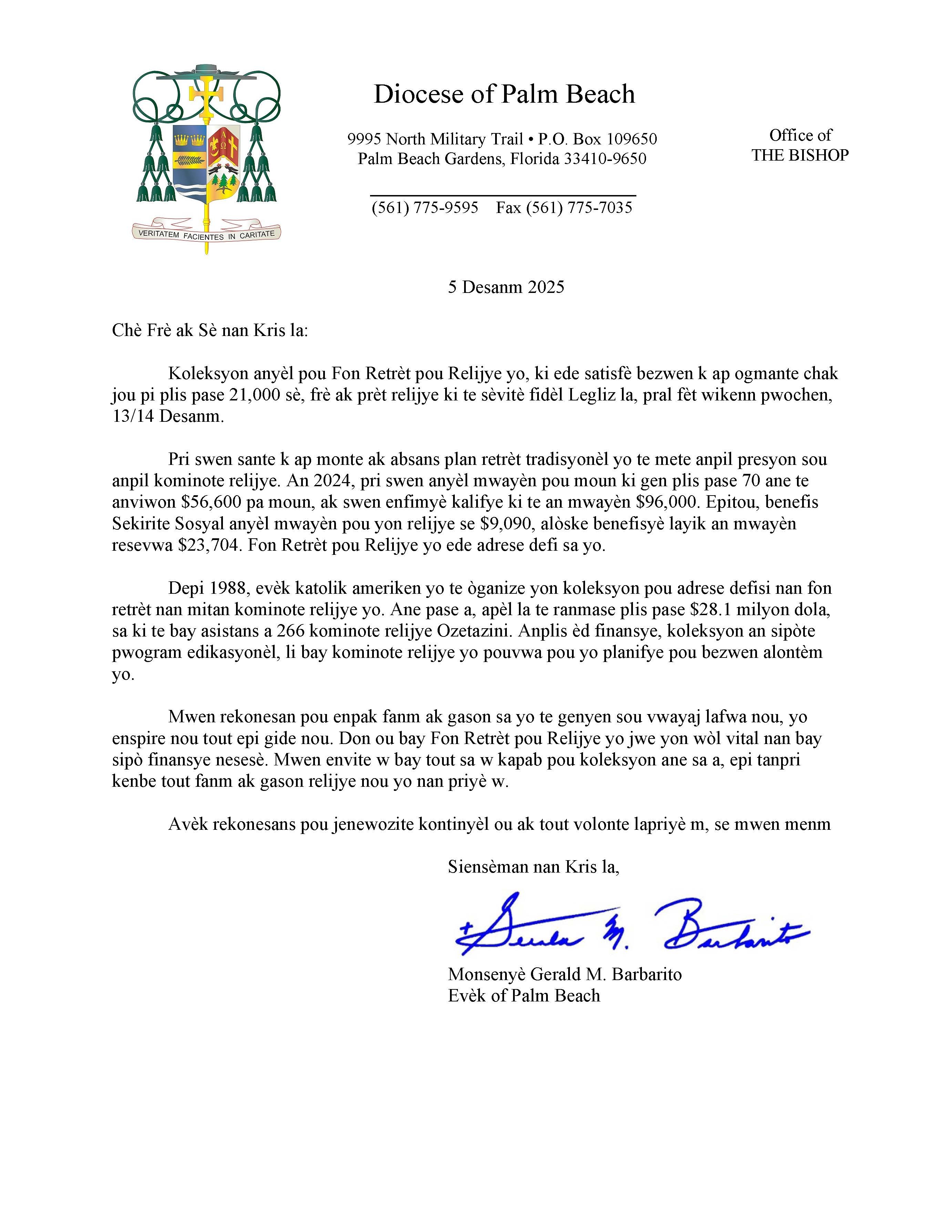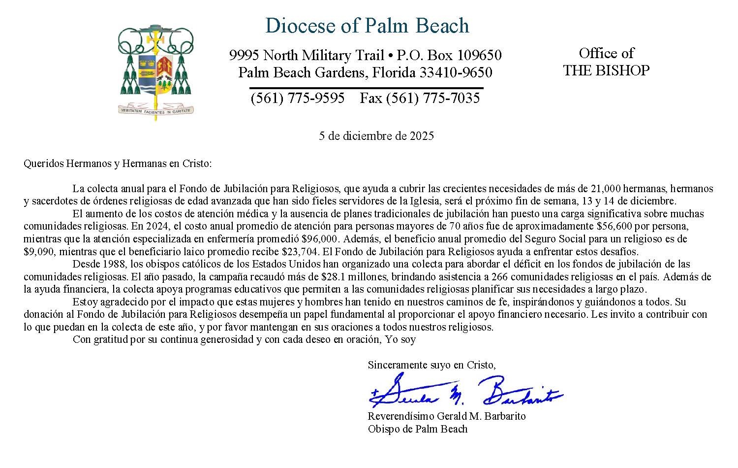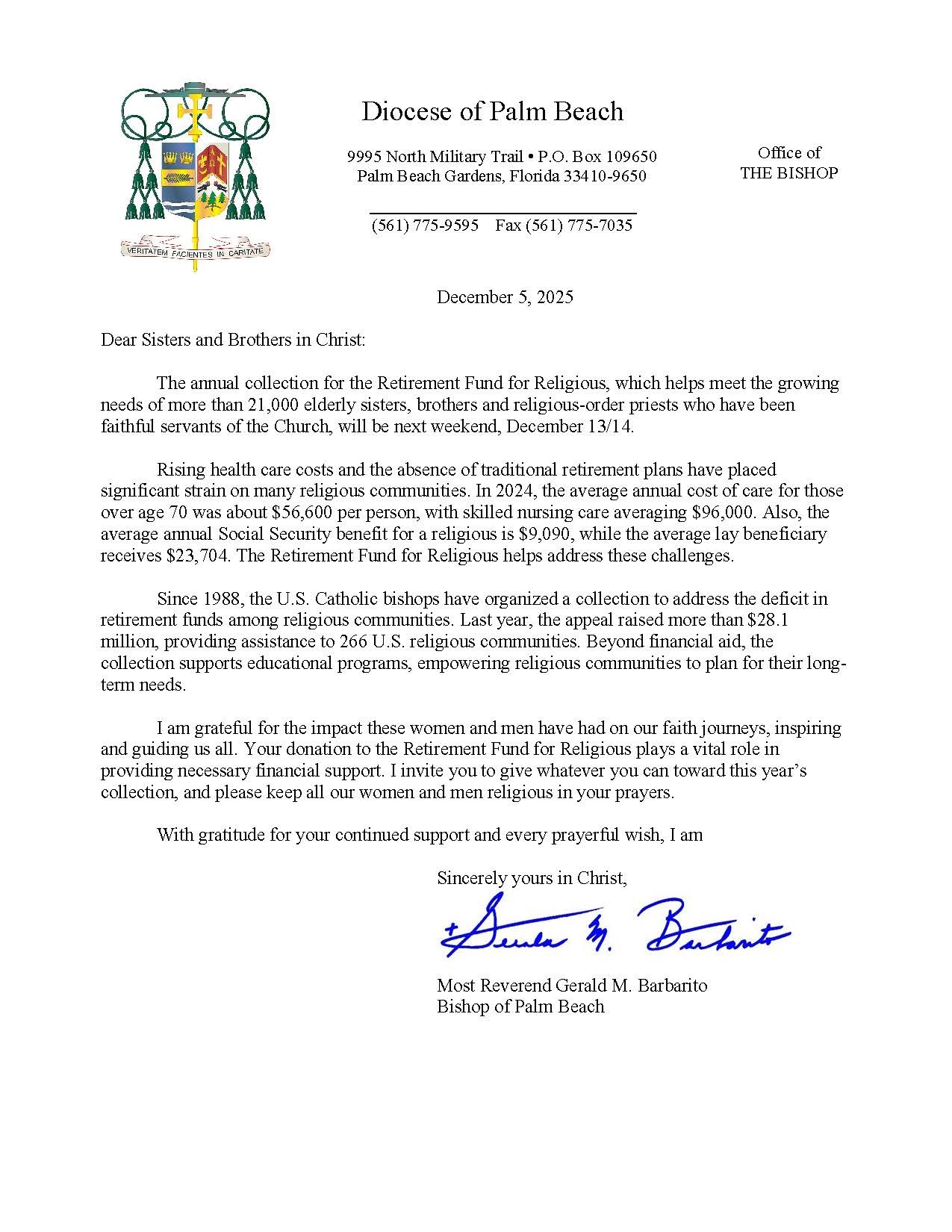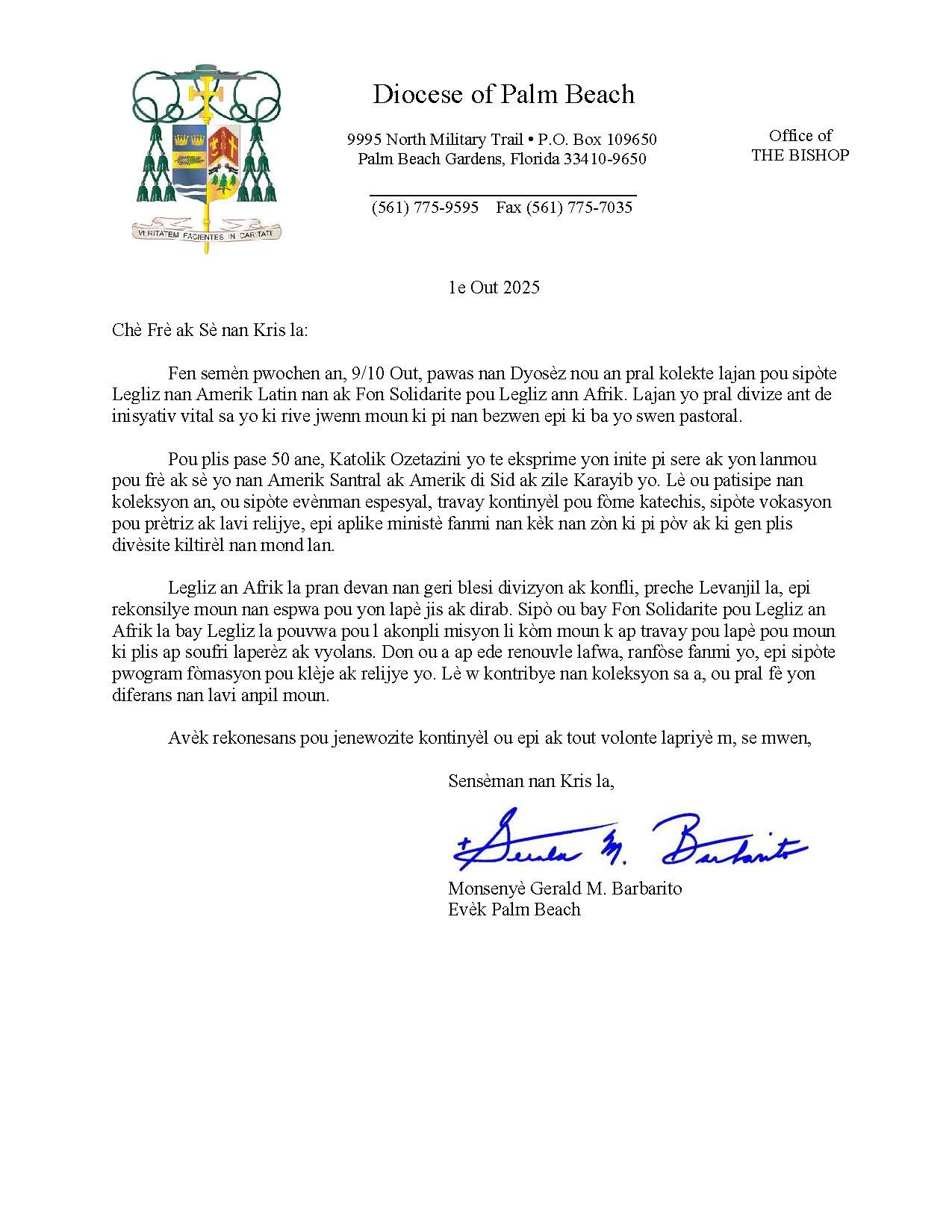 Below are the letters required to be published as a full page or half page in parish bulletins the weekend before the collection occurs. These letters are from the Bishop and the branding standards of the letter should be followed. The letter may also be read aloud, in addition to it being printed in the bulletin and shared on your parish’s social media and/or website. If you have questions about the letters, please contact the diocesan Director of Communications and Development (Jennifer Trefelner). If you have questions about reporting and submitting collection funds, please contact the diocesan Finance Office.