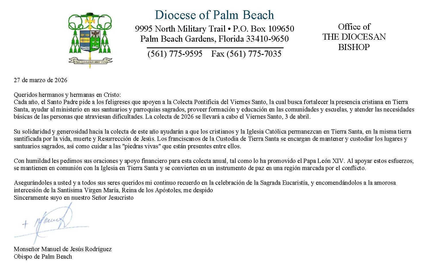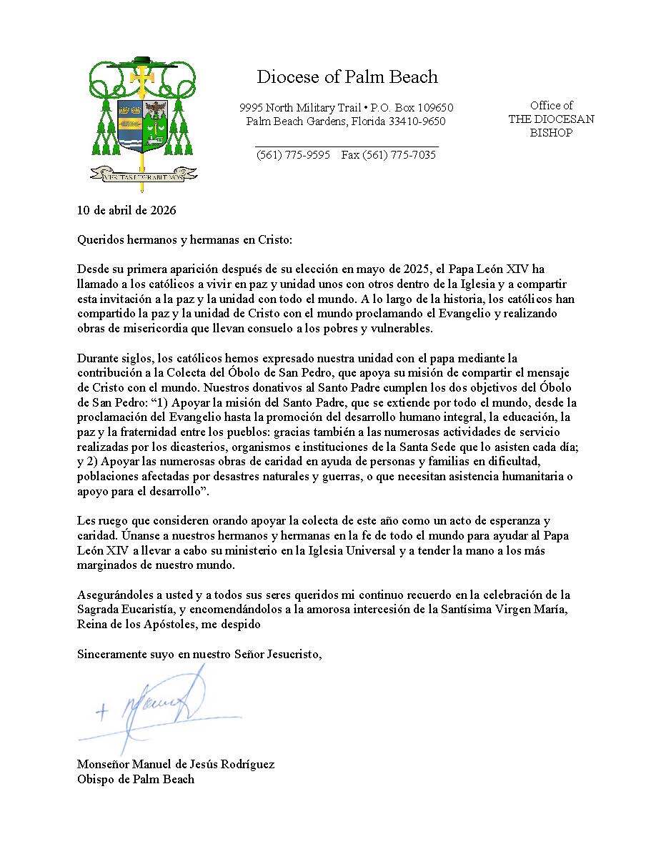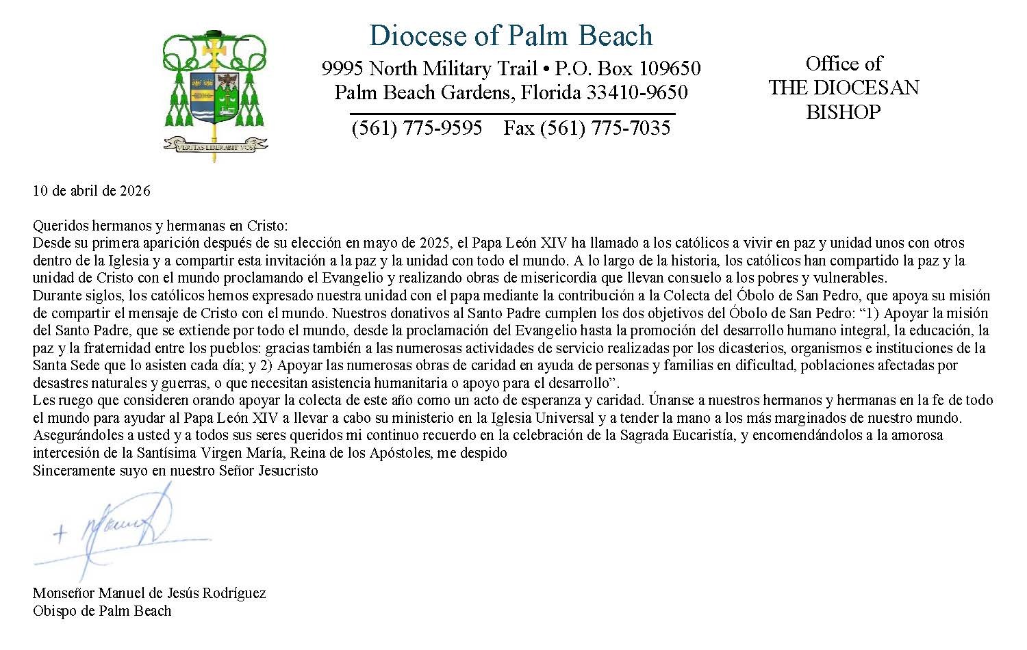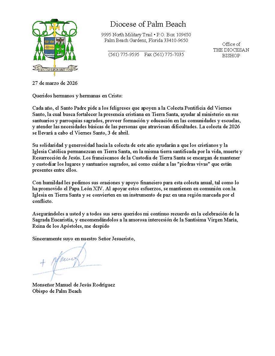 Below are the letters required to be published as a full page or half page in parish bulletins the weekend before the collection occurs. These letters are from the Bishop and the branding standards of the letter should be followed. The letter may also be read aloud, in addition to it being printed in the bulletin and shared on your parish’s social media and/or website. If you have questions about the letters, please contact the diocesan Director of Communications and Development (Jennifer Trefelner). If you have questions about reporting and submitting collection funds, please contact the diocesan Finance Office.
