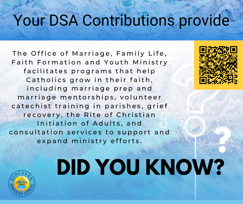 Marriage and Family: https://vimeo.com/1036138174 - Bibi Mendoza, Director of Religious Education at St. Clare Catholic School gets to see firsthand how the DSA support of marriage, family life, faith formation, and youth ministry offices changes life within her parish every day. She has witnessed children of every age share the light of Christ in programs like the Catechesis of the Good Shepherd. The youth ministry department at the diocese has been instrumental in starting a new small group program. The middle and high school students can explore their faith in our community. The programs are available for all parishes in our five counties, and with the support of the DSA tools are provided to help students develop an unshakeable faith foundation and grow in their relationship with the Lord.