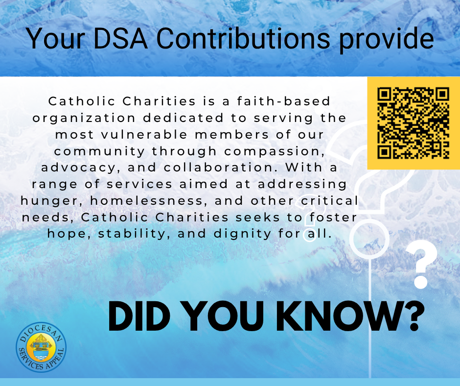 Catholic Charities: https://vimeo.com/1036139558 -When people contribute to the DSA, they’re making investments in safe spaces, warm meals, and secure beds for children. It’s through that kindness and generosity that Jully's son and I have found renewed hope and a glimpse of a brighter future. Jully and her son were homeless, living in their car, and desperately seeking help. Despite numerous calls to various shelters, they were repeatedly turned away until they reached out to the Samaritan Center, and there was a spot for them. She recounts, "The moment we walked through the doors of our new home, a sense of peace and the love of the Lord flooded us. Seeing my son have a bed, a shower, and a place to call home filled my heart with indescribable joy. And, there’s nothing like feeling safe and secure".