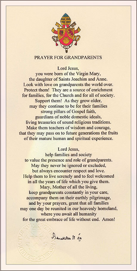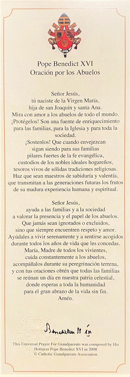 - Publishing the Prayer for Grandparents written by Pope Benedict XVI in your September 7 Bulletin (Click to download in Spanish & English) https://www.catholicgrandparentsassociation.org/popes-prayer/